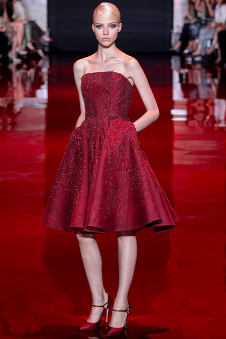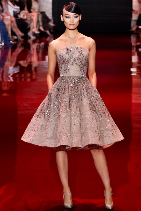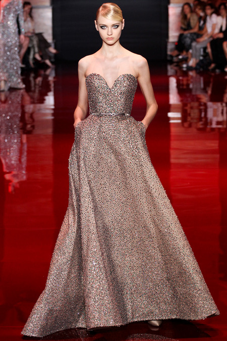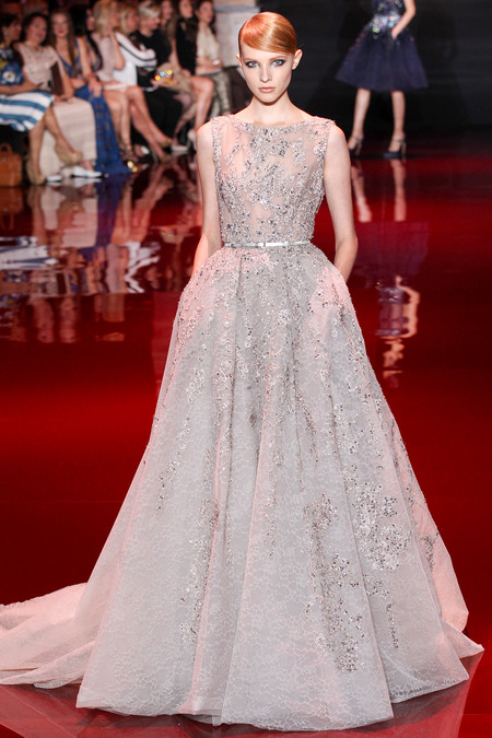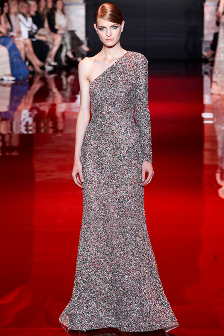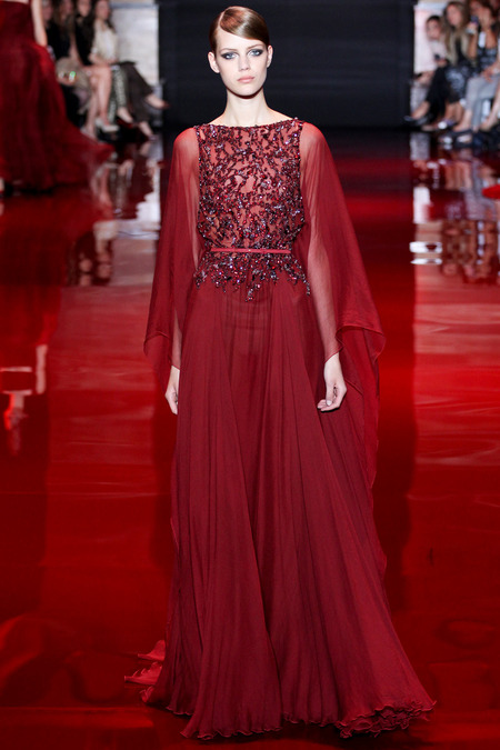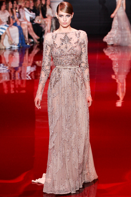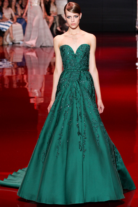 O designer libanês Elie Saab não economizou no brilho em seu desfile, na semana de Haute Couture, em Paris. Para esta coleção, Saab trouxe  vestidos em bordados maravilhosos, em tecidos como seda, mousseline e diferentes rendas. Inspirado nas jóias da coroa, ele apostou em uma cartela de cores super elegante para a coleção; vermelho rubi, azul safira e verde esmeralda e prateado. Inspiração pura pra madrinhas, formandas e noivinhas. Foi difícil escolher, mas vamos aos meus favoritos: