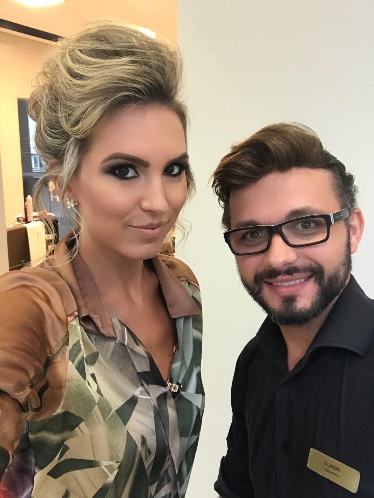 Além de cuidar da cor do meu cabelo, o Claudio Wolski fez o penteado maravilhoso que ficou perfeito para o vestido.