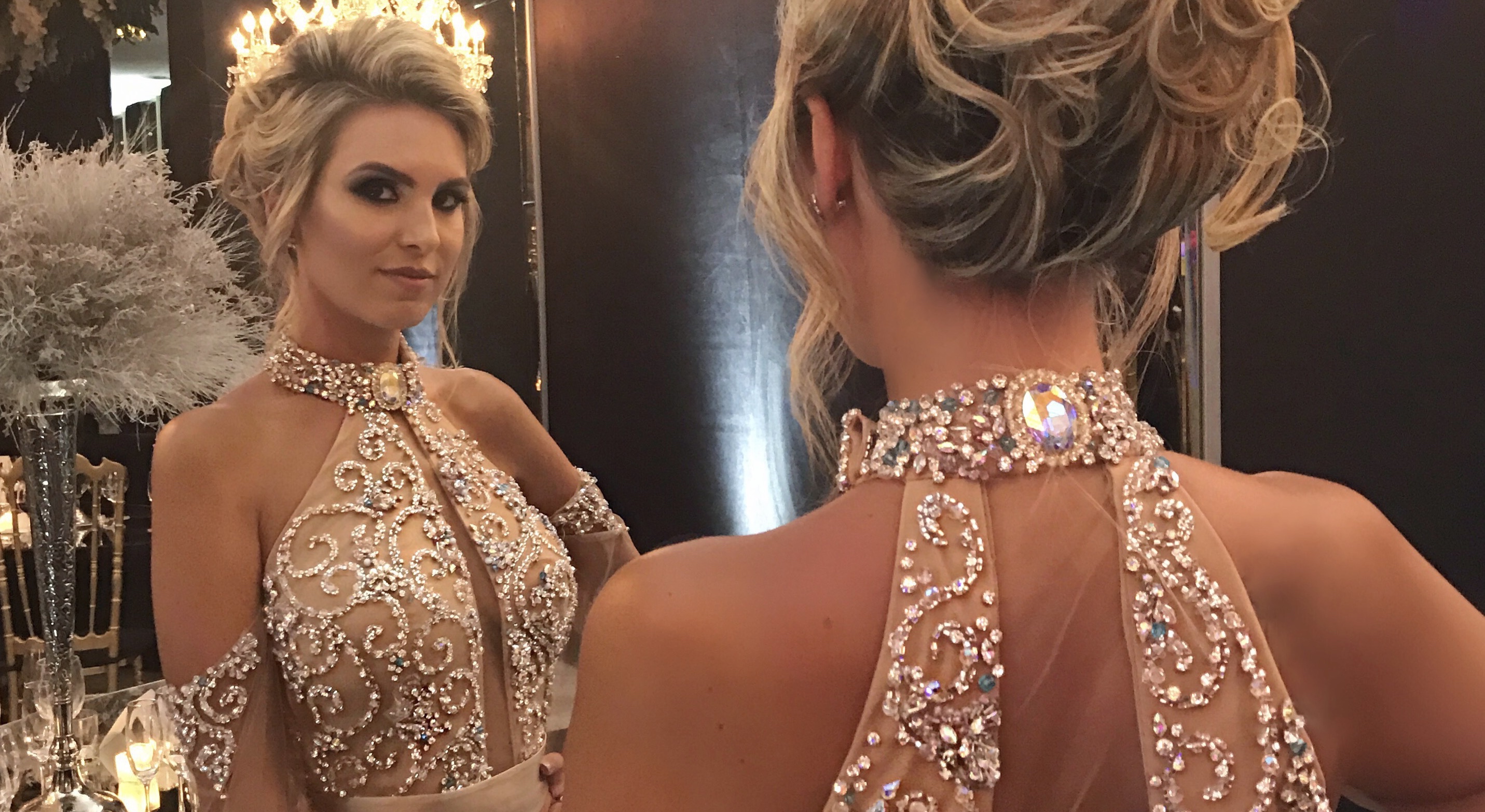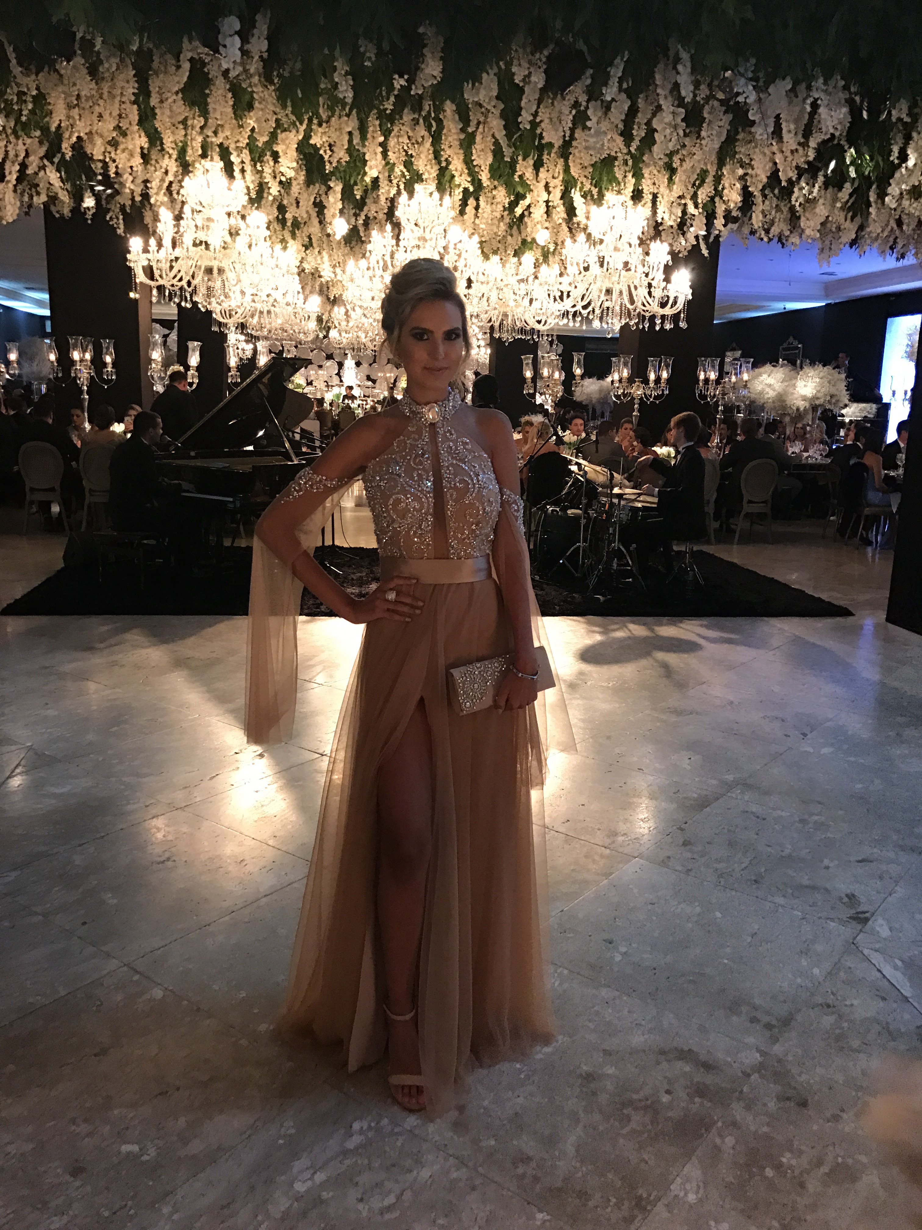 Oi, meninas. Estou muito apaixonada por vestidos de festa em tons pastel. Perceberam? Dessa vez, optei por um nude mais escuro com bordados cintilantes puxando para o azul bebê. Confiram.