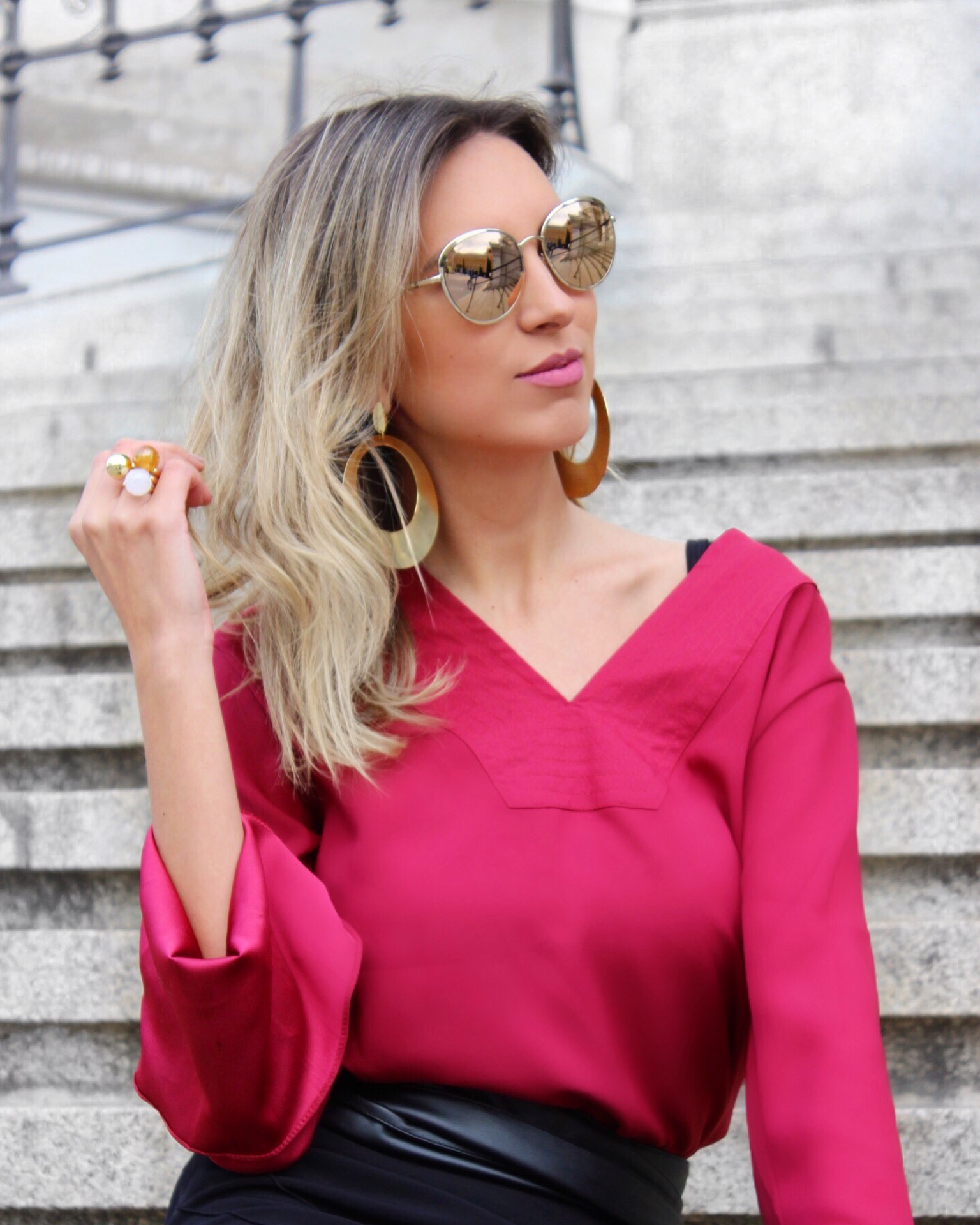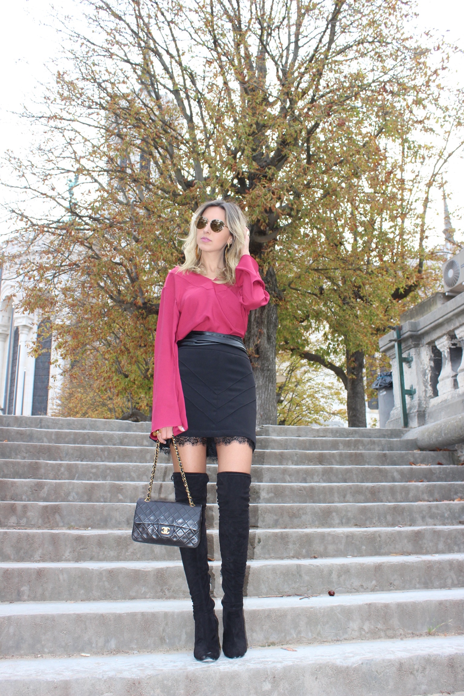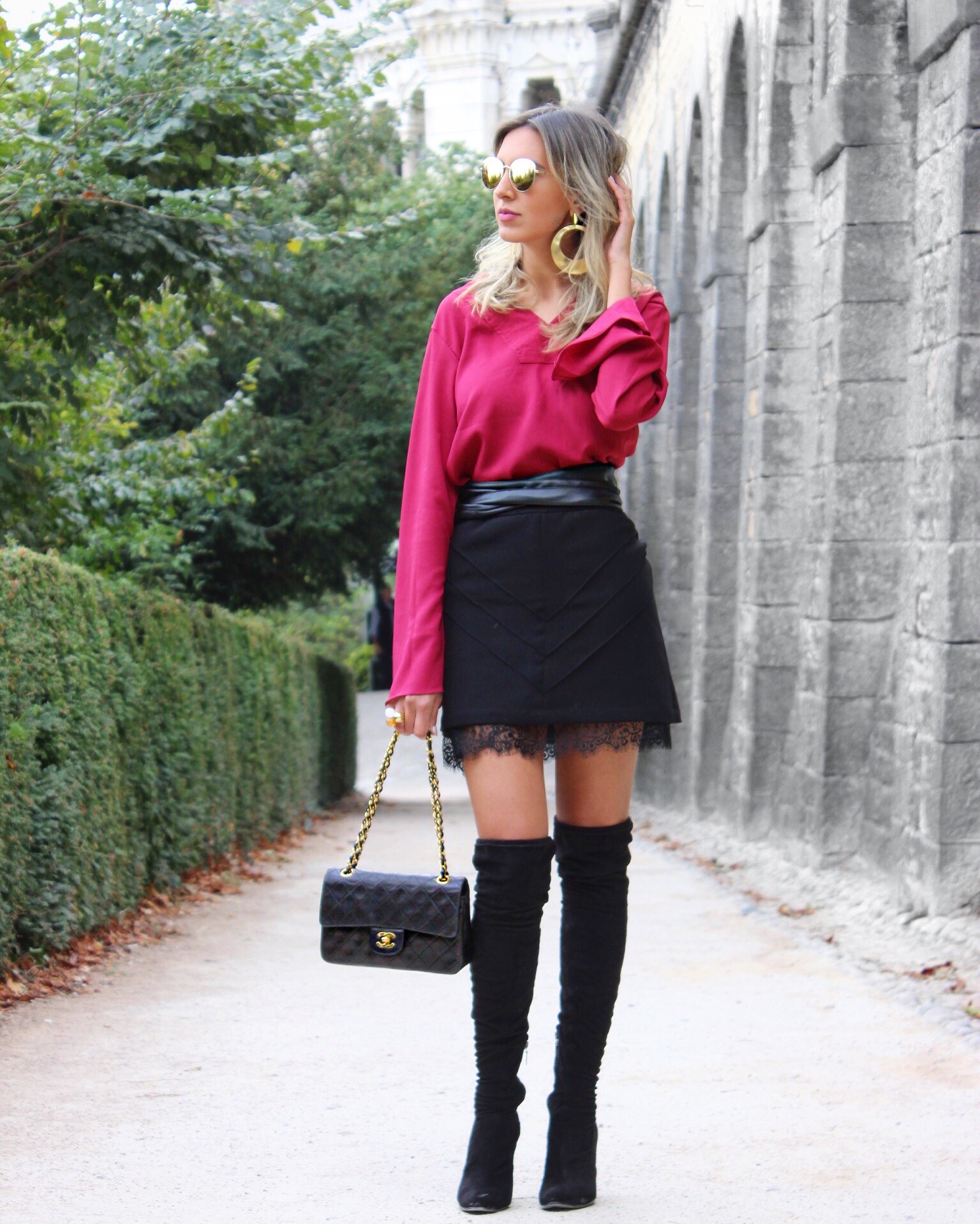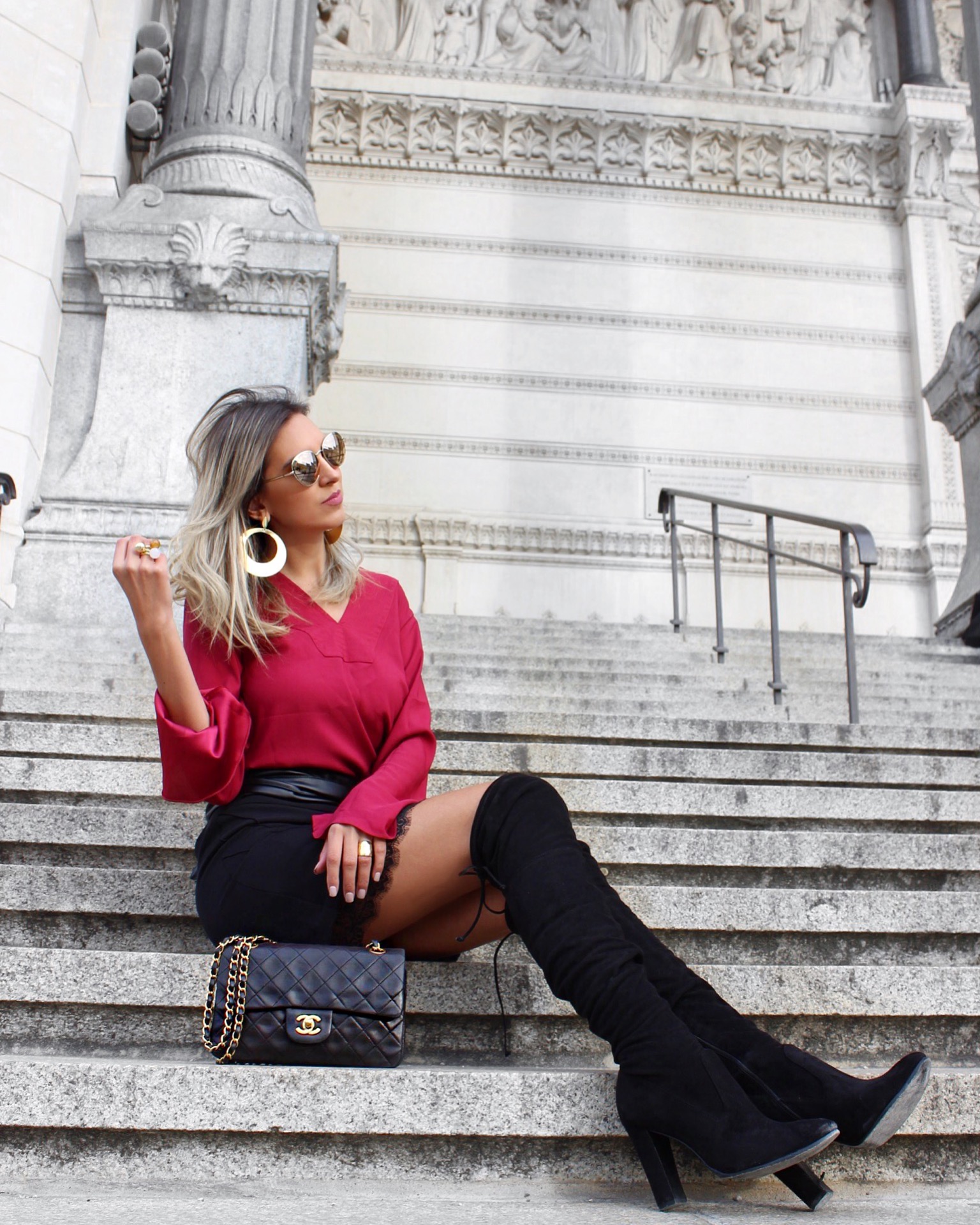 O clima de lá estava sol com um friozinho agradável, e este look caiu como uma luva para o meu dia em Lyon. Como a camisa linda da Naaz já chamava super atenção optei por compor o resto do look com preto e detalhes em dourado. Aliás, os detalhes que enriqueceram e fizeram muita diferença nesse look, tanto os acessórios, quanto o cinto e o combinete de renda debaixo da saia.