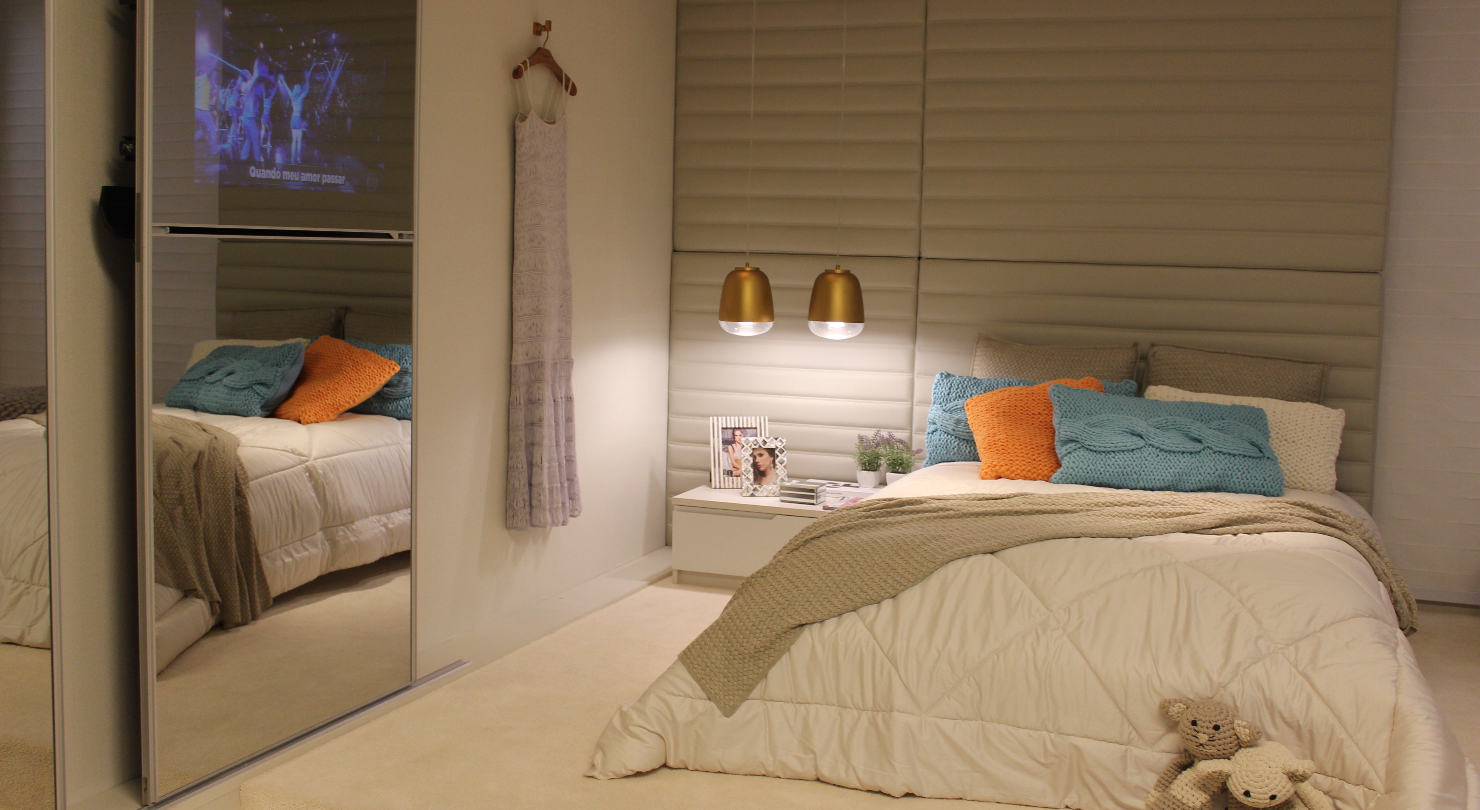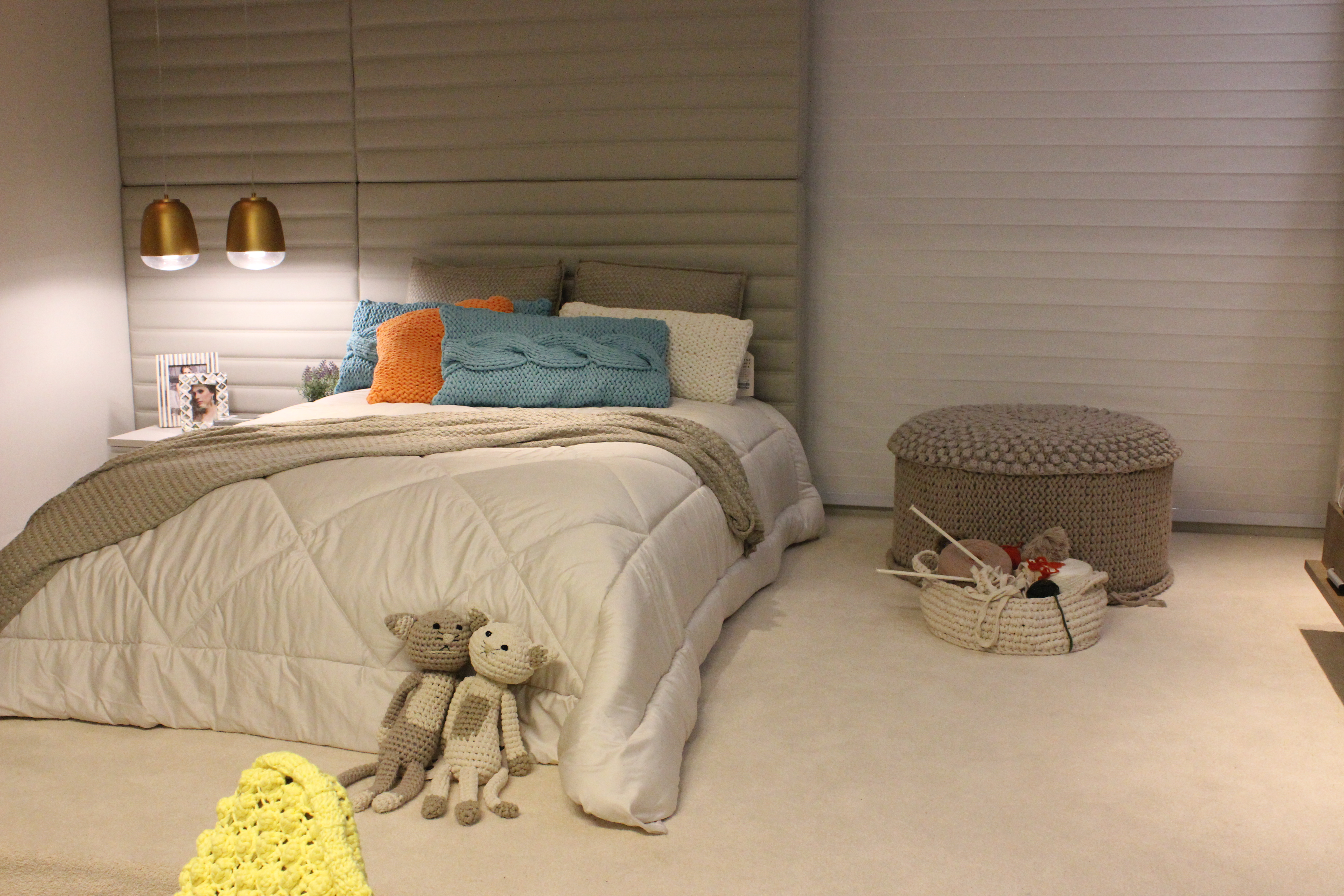 A arquiteta Yara Mendes fez o espaço “Quarto da Moça” pensando realmente em algo funcional para mulheres jovens, que como eu, amam moda. Isso fica presente em cada detalhe do quarto, como nas mantas, travesseiros, pufes e bancos revestidos com crochê e tricô da Lafort.