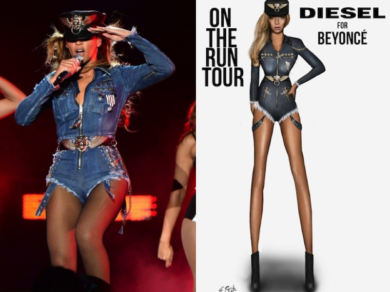 No dia 25 de Junho, em Miami, fui na estréia da On the Run, a primeira turnê de Beyoncé e Jay Z juntos. Em duas horas e meia de show, com mais de 40 músicas, clipes em preto e branco contando a história de um amor bandido e vídeos caseiros com imagens do casamento, dia-a-dia e da filha do casal, teve uma coisa que eu não poderia deixar de compartilhar com vocês: o figurino incrível de Beyoncé.